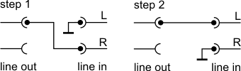 The first calibration is done with the reference signal only connected to channel 2 (R) and channel 1 (L) grounded. The second calibration is done the other way around.