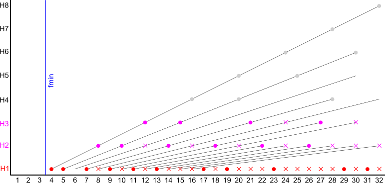 Because of the second condition it is strongly recommended to set the minimum frequency at least higher than the nth harmonic of the ground frequency of the generated pattern. Otherwise a large gap would occur after the first used frequency.