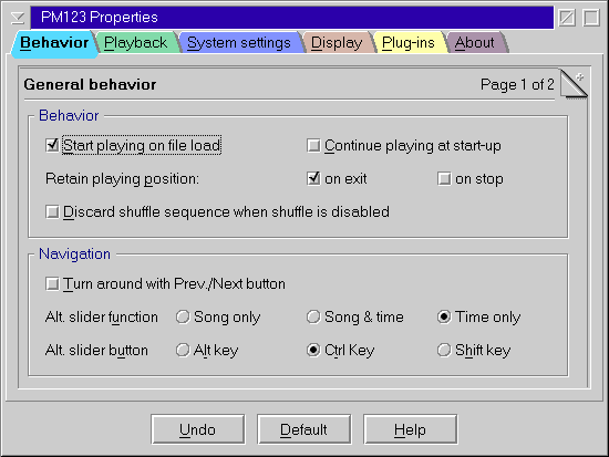 . In the dialog you can configure PM123's engine and interface. It consists of:
