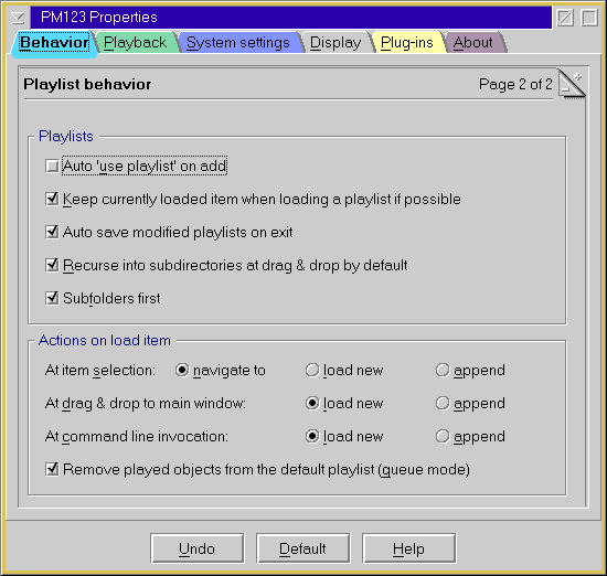 PM123's Playlist Behavior Settings